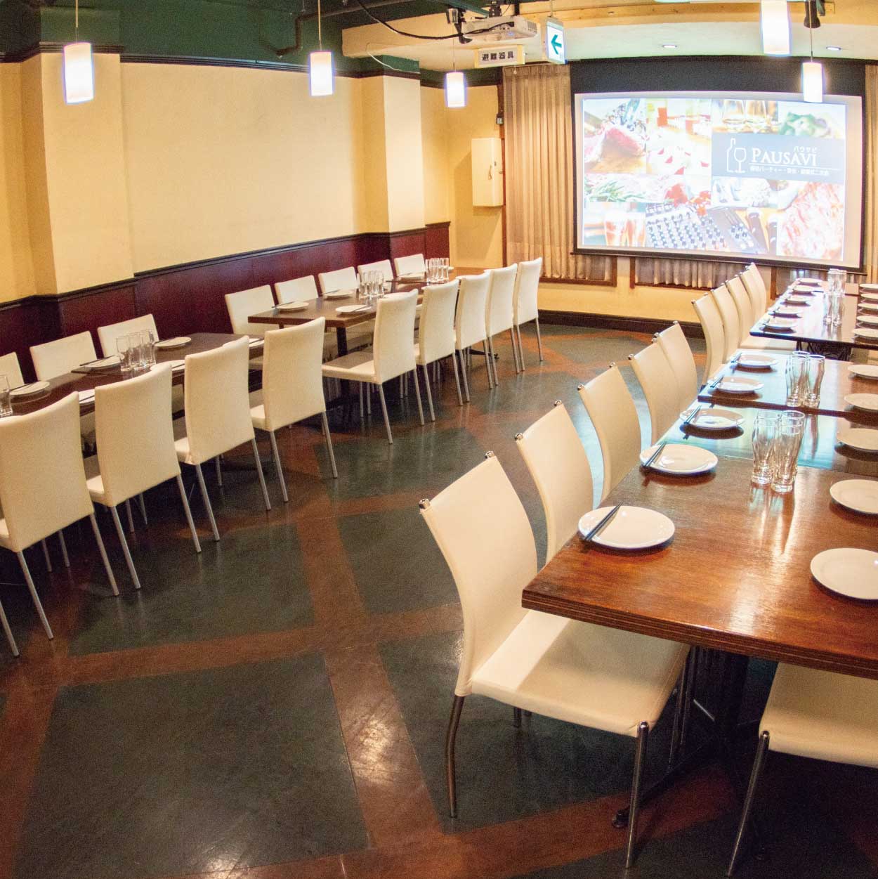【最大120名の大型会場】 お客様だけのプライベート空間だからこそ気兼ねなくゆったりと楽しめます★ レイアウトも自由&立食も対応しているのでご要望に応じてご用意!! 会社の飲み会や宴会、懇親会、結婚式二次会など様々シーンにおすすめです!