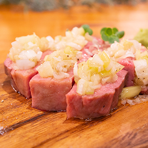肩甲骨の下にあるごく希少な部位。やわらかく上質な味わいが特徴です。