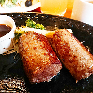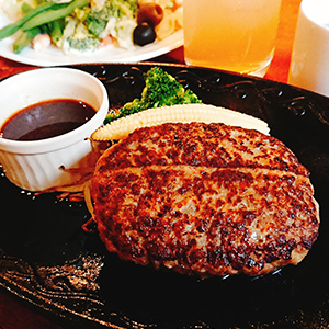 つなぎを一切使用しないで、塩コショウのみで味付けをした牛100%のハンバーグ。肉肉しさが癖になります。