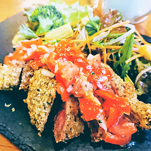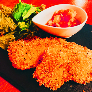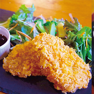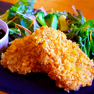 穀物育ちのUS産チャックロールをお店で丁寧に衣をつけました。一枚肉だからこそ肉本来の旨味や食感をお楽しみ頂けます♪衣にはハーブやスパイスとパルメザンチーズを混ぜ込むことで香り豊かな仕上がりに!