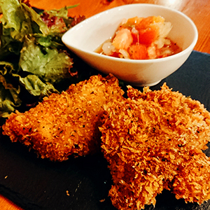 鮮度抜群のノルウェー産サーモンを使用したふっくらやわらかなサーモンフライ♪ イタリア伝統のフレッシュトマトとオニオンを使用したケッカソースとの相性バッチリ!